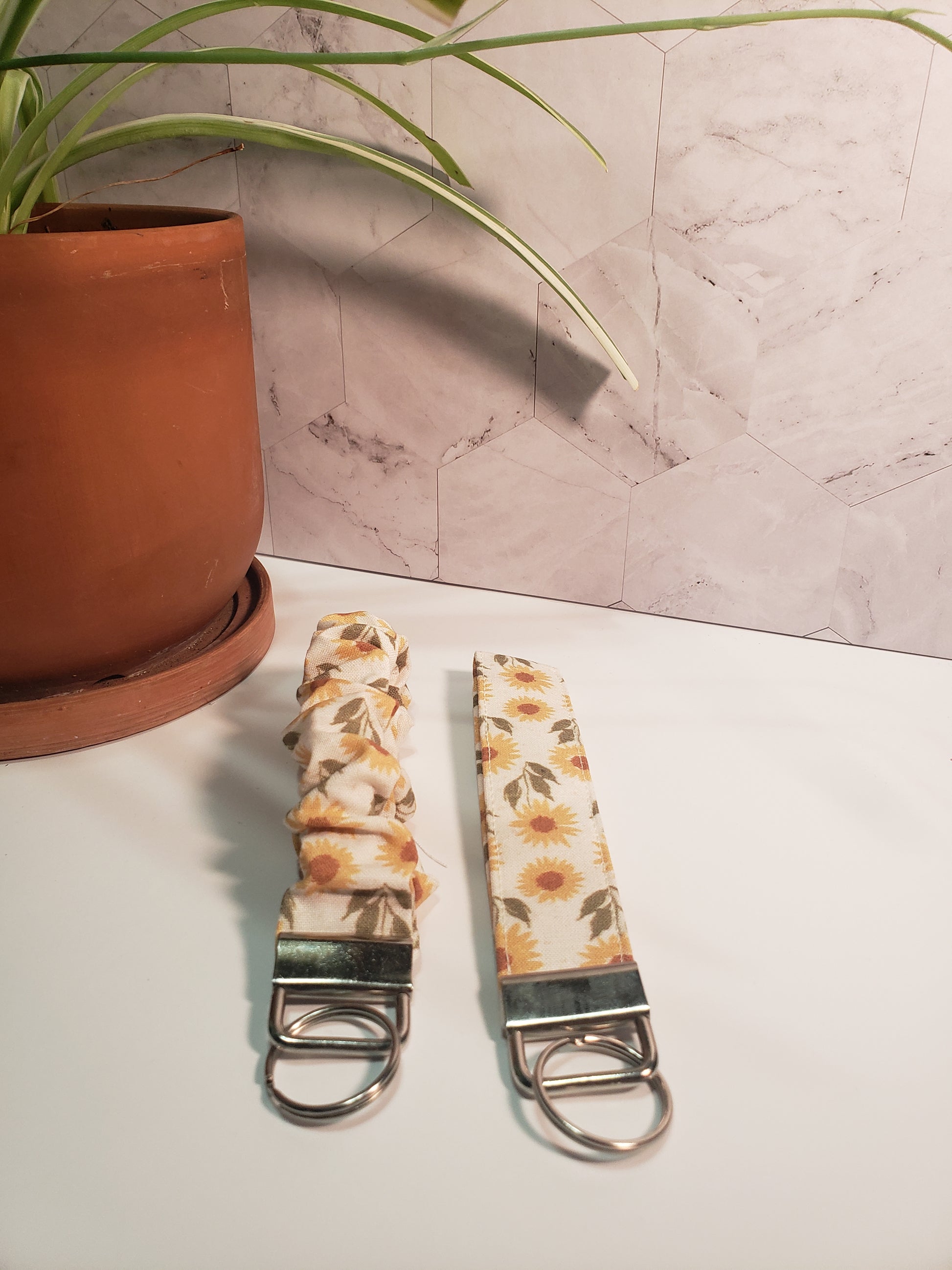 This scrunchie wristlet is perfect for holding your car keys, work keys, or makes the perfect wallet accessory . This wristlet also makes an easy and unique gift for teachers, coworkers, neighbors, friends or for yourself. Each wristlet is made from 100% cotton, an 8.5 inch elastic band, and a piece of silver hardware that contains a key ring.